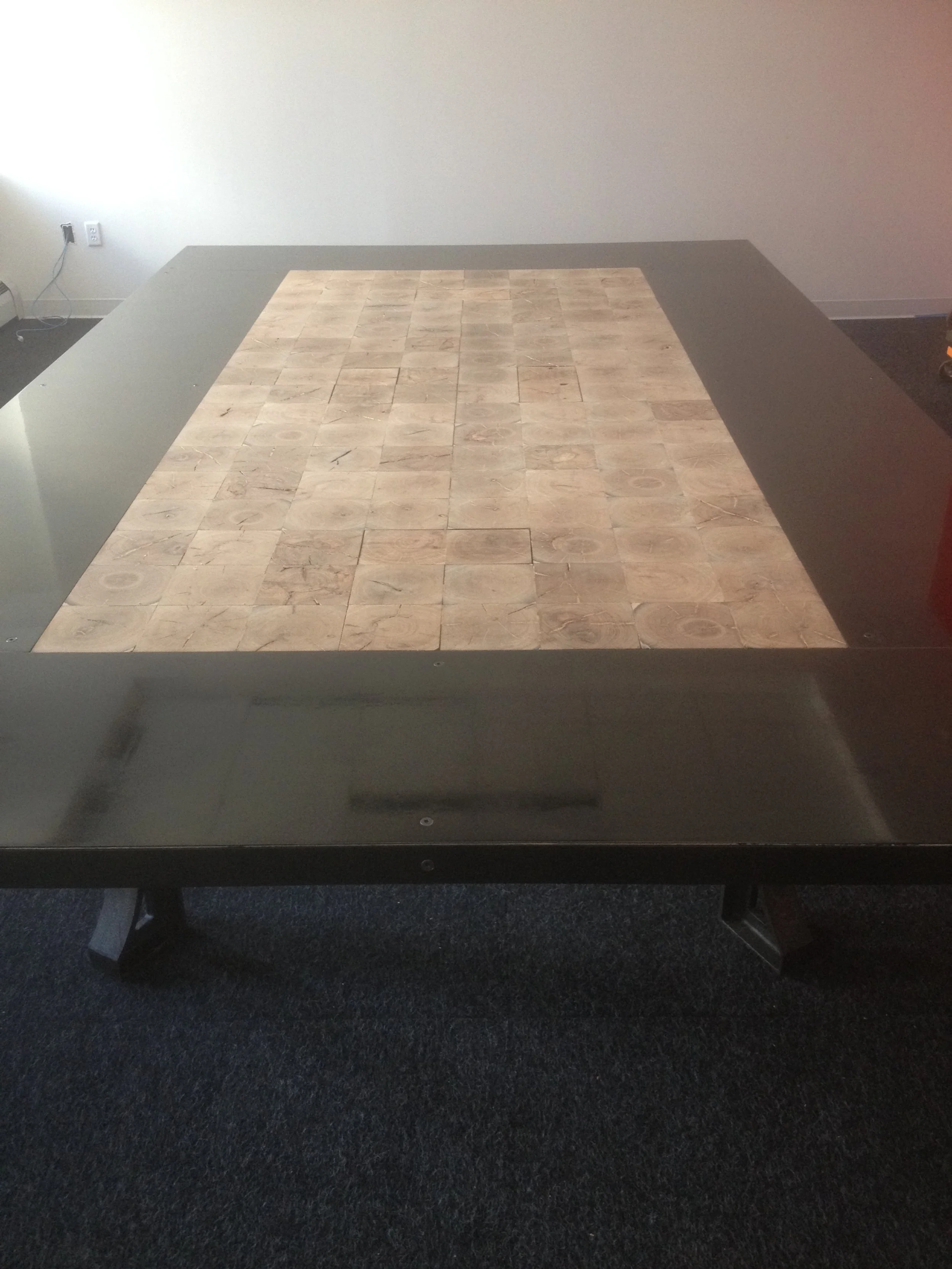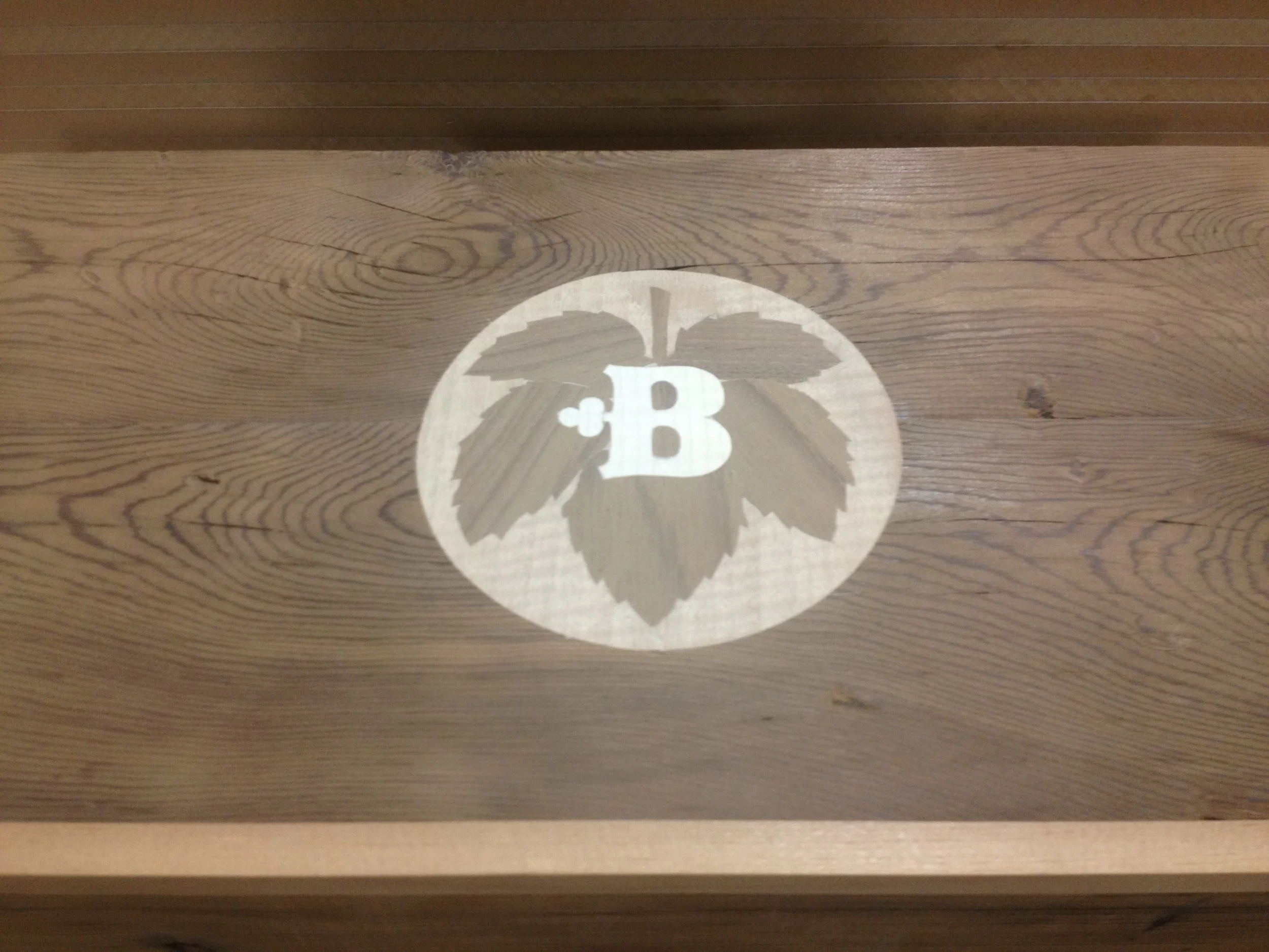 Bespoke box built from reclaimed Pabst brewhouse timber with handmade inlay